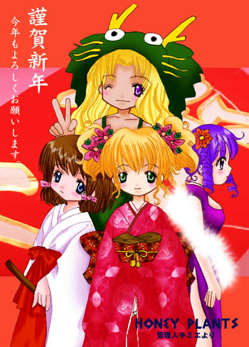 HONEY PLANTSのキミエさんよりお年賀で戴いたアンジェ女の子4人組です。 交流のある人全員に送られたものを、お願いして掲載させて頂きました☆ すっごく可愛いイラスト、ありがとう!
